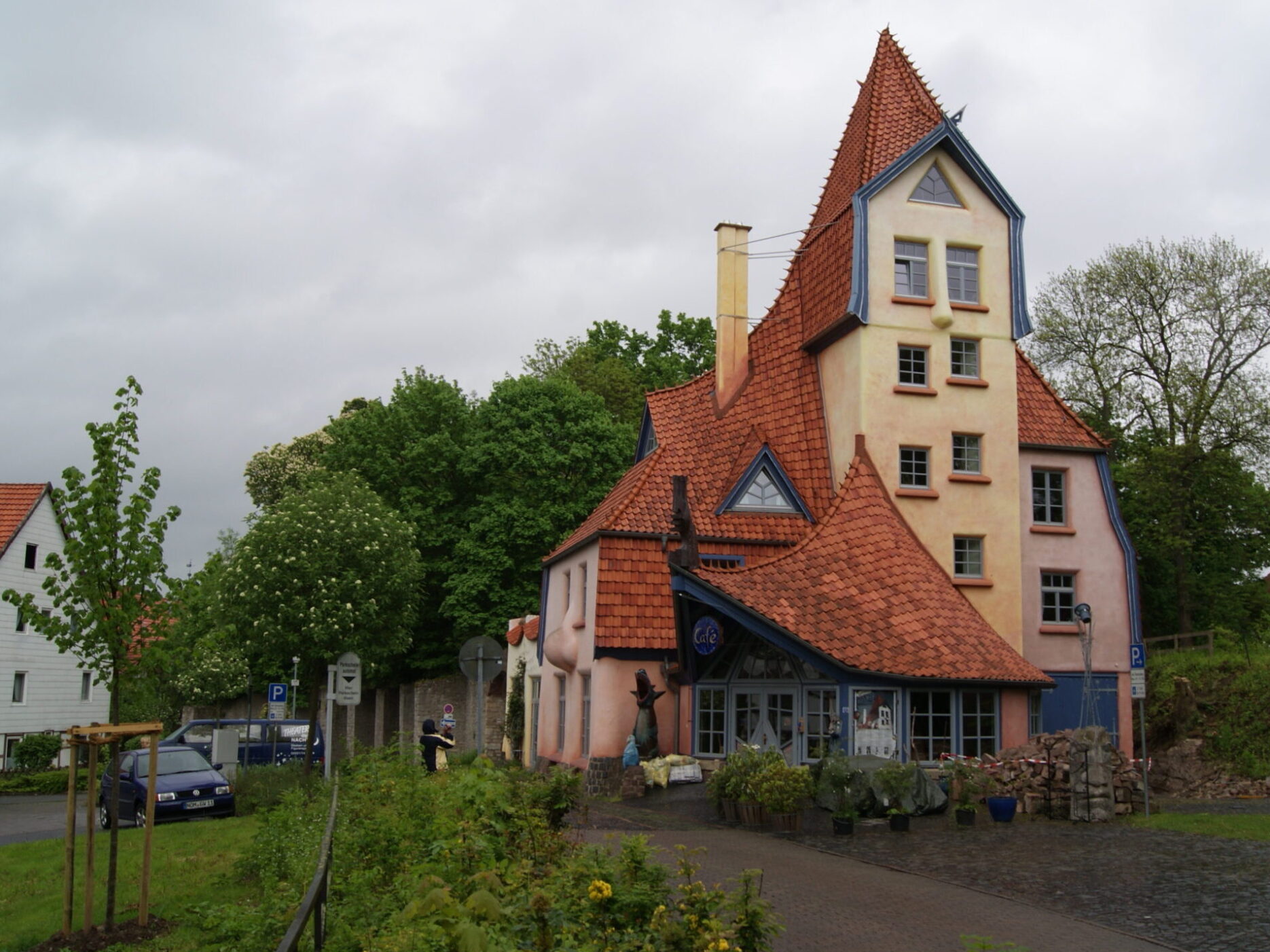 Schon, wer auf die ehemalige Feuerwehrwache in der Oberen Straße zuläuft, sieht sofort, dass hier kein gewöhnliches Gebäude wartet, sondern ein lebendiges: Mit großen Knubbelnasen und einem Drachen, der aus dem Dach des Turmes in den Northeimer Himmel schaut, während sein Skelett im Inneren als Treppe dient. Wer diese hinaufsteigt, kann in zahlreichen Fenstern die von Hand gefertigten Figuren bisheriger Stücke bewundern: Vom Rattendämon, über Momo bis zu den Mülldetektiven. Das alles ist magisches Vorspiel für den Moment, wenn das gebogene Alphorn zum Einlass bläst …